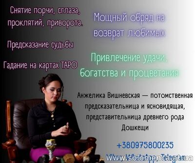 Гадалка Киев, приворот Киев, ясновидящая Киев, предсказательница в Киеве, экстрасенс Киев, магическая помощь в Киеве, ясновидящая Анжелика Вишневская, снятие порчи и сглаза в Киеве, приворот и родовые проклятия